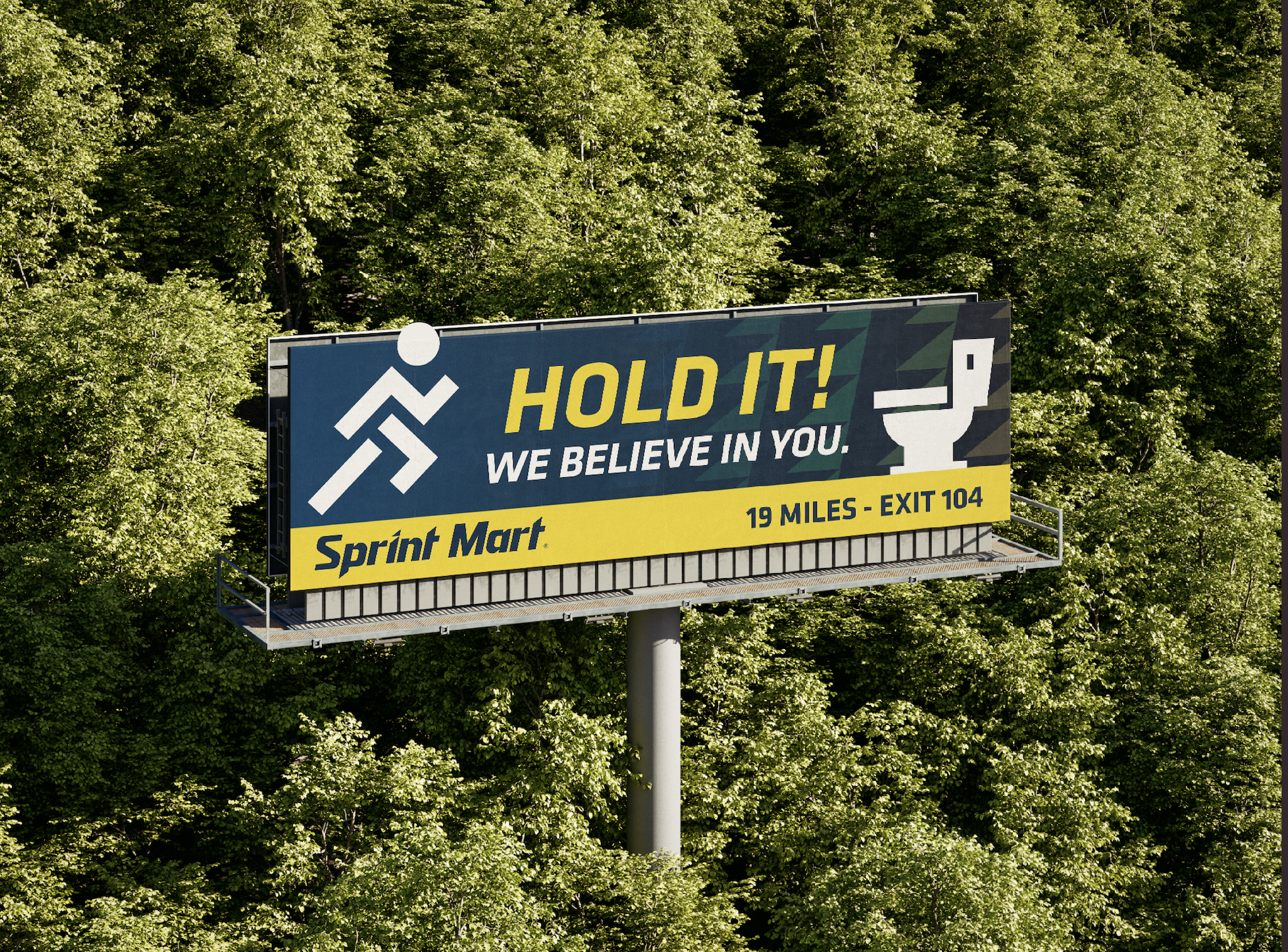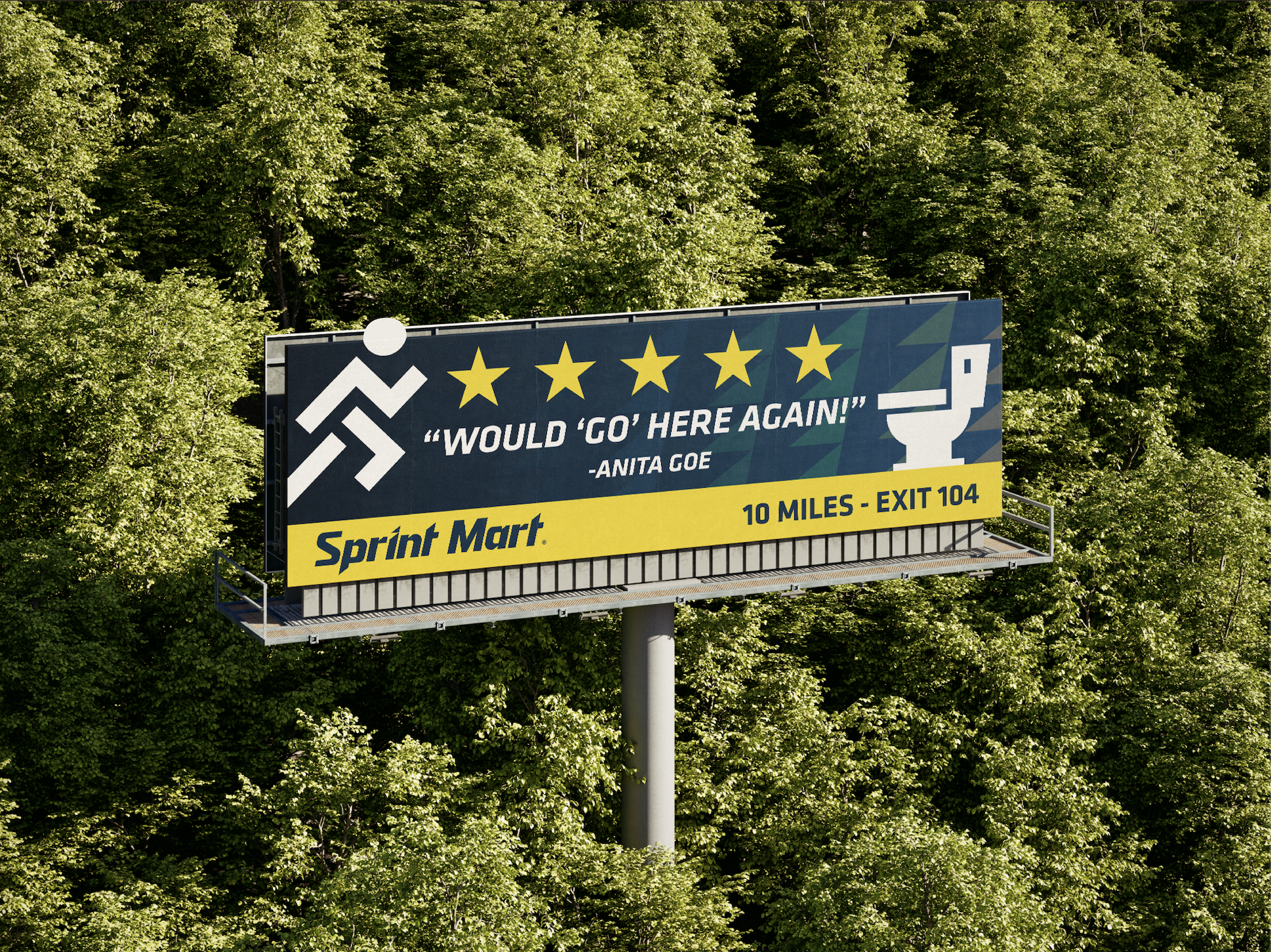 Our team created a cohesive five-board campaign that stayed true to Sprint Mart’s established branding while introducing bold messaging designed to capture attention at highway speeds. The boards used clear typography, strong brand colors, and simple layouts for quick readability. Select boards incorporated lighthearted humor to make the message memorable, turning a typically overlooked convenience into the star of the campaign and encouraging drivers to take the next exit.