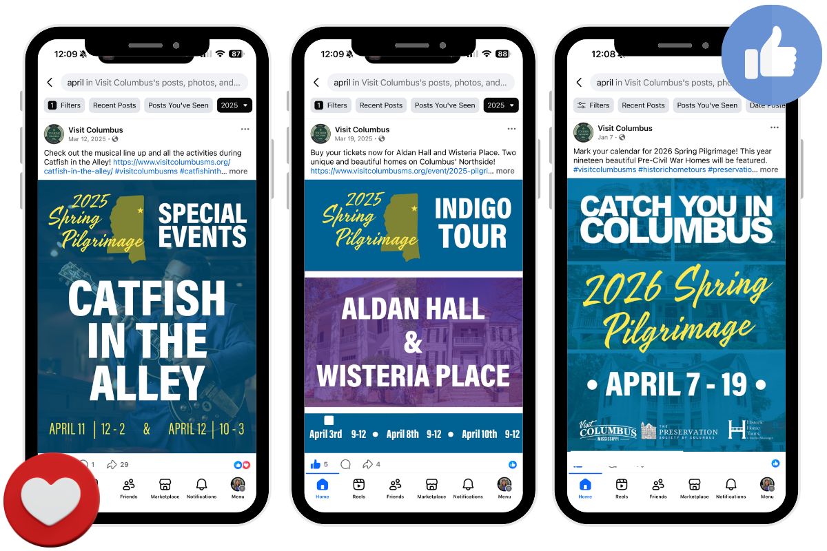 We partnered with Visit Columbus to create the visual materials for the 2025 Spring Pilgrimage, one of the city’s signature tourism events. The goal was to develop a cohesive visual campaign that felt inviting, elevated, and timeless while celebrating the charm, history, and hospitality that define the experience.
